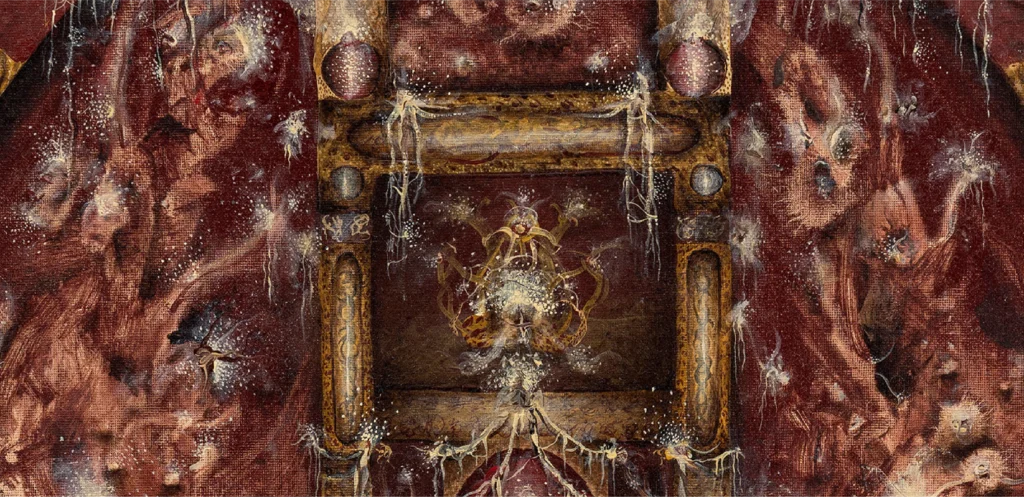 Andrea Luzi, Dettaglio – Megiddo La consumazione del fuoco, 2025, olio su tela, 80x60cm Ph. Simon Veres